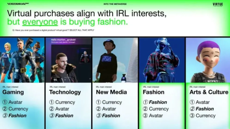 据GameLook报道,近期,美国Vice传媒旗下的创意机构Virtue Worldwide就通过旗下创新部门Virtue Futures团队(以下简称VF)带来了一份关于Web3.0时代全球数字时尚的大型报告。调查显示,有83%的受访者对元宇宙给出了正面的评价,而有76%的受访者表示愿意在2022年内使用和元宇宙相关的品牌或平台,例如Meta、《堡垒之夜》、Roblox等。