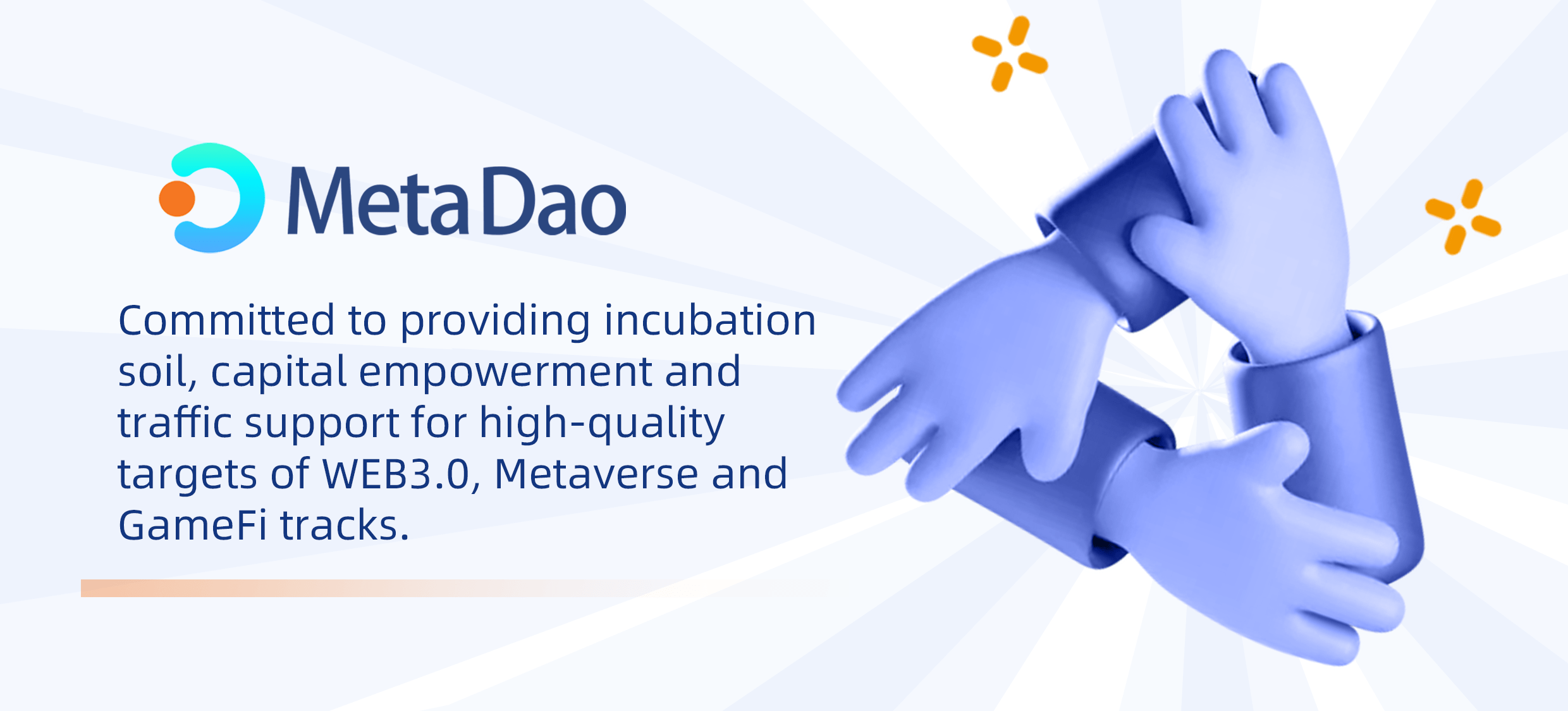 Meta DAO,是由加密社区和元宇宙公会共同发起的公会化金融DAO,致力于为WEB3.0、Metaverse及GameFi赛道优质标的提供孵化土壤、资本赋能及流量支持。