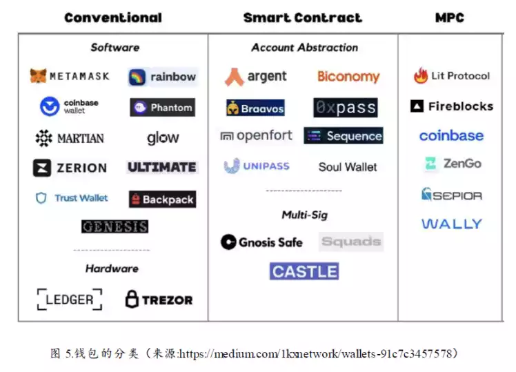 如前文提到的各种类型的钱包,多链钱包已经覆盖了大部分的移动端、桌面端钱包以及硬件钱包,插件钱包目前相比较而言发展较慢,主要集中在 EVM 兼容的多链钱包,Polkadot 的 Polkadot.js 跨链钱包以及 Cosmos 的多链钱包。未来伴随着越来越多的多链多智能合约的互操作性需求增加,多链钱包的竞争预计将会更加剧烈。