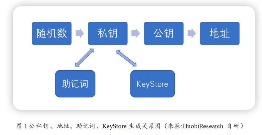(1) 私钥与助记词:经过格式转换形成助记词;