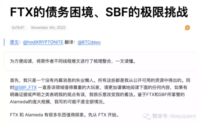 还有一些别的新势力 KOL,比如这一 BTCdayu,我在 2021 年 11 月 4 日注意到他,就是因为他写了一篇有关 FTX 的解读文章内容,和其它 Twitter 大 V 荐股不一样,它的文章内容很有逻辑。5 天之后,FTX 大崩溃,躲过一劫。