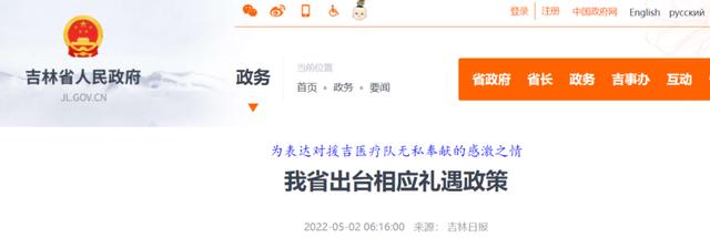 随着我省疫情形势逐步向好,完成医疗支援任务的各省区市援吉医疗队陆续返程。为表达对援吉医疗队真诚帮助、无私奉献的感激之情,近日,我省出台了相应礼遇政策。