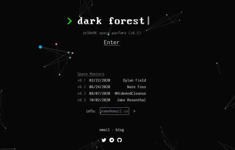 是一款基于零知识证明构建的去中心化实时战略游戏“黑暗森林”(Dark Forest)。