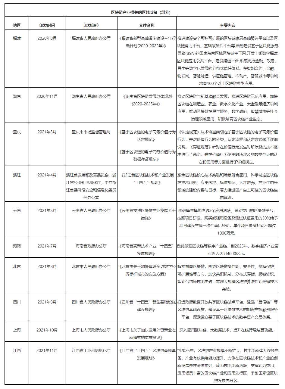当前,区块链正在快速发展并逐渐渗透到我国经济发展各个领域,成为助力发展数字经济的重要手段。近几年,我国愈加重视区块链,密集发布区块链扶持政策,尤其自2020年全国进入区块链政策热潮以来,各地方政府纷纷发布了区块链相关支持与规范政策。