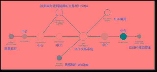 如果说美国财政部的这份报告仅仅是对NFT洗钱风险的预估,那么区块链数据分析服务机构 Chainalysis 的最新报告则给出了链上监控到的证据。该机构拥有专门的链上非法地址数据库,并长期为美国等国家的监管和执法部门服务。