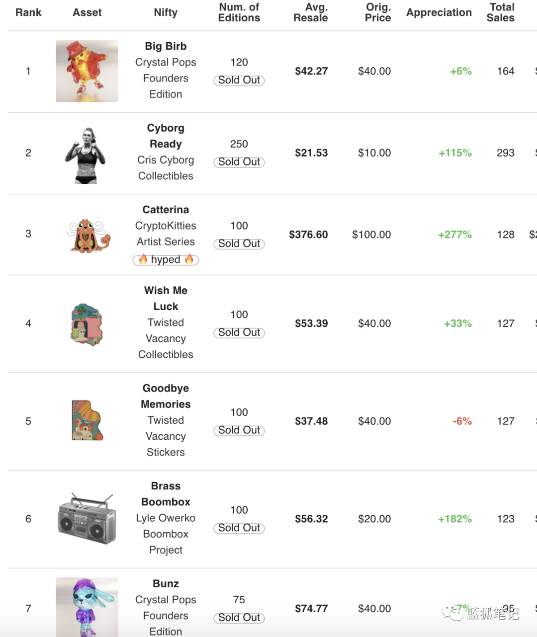 除了Opensea上的数据,我们从nonfungible上也可以看到,NFT的总交易量超过1亿美元,交易次数超过470万次,累计交易超过100万美元的项目超过16个。