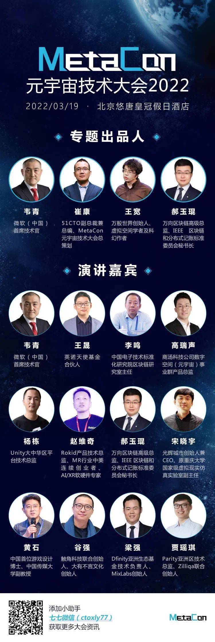 2022 年 3 月 19 日,MetaCon 元宇宙技术大会 2022 将在北京召开。本届大会主题为“探索·应用”,将邀请行业内知名科研学者、头部科技公司技术大咖、独角兽型创业企业家,共同探讨元宇宙在各个领域的技术实践落地,把脉元宇宙未来发展趋势,话题覆盖区块链、人机交互、电子游戏、人工智能、网络及运算、物联网六大元宇宙基础技术。