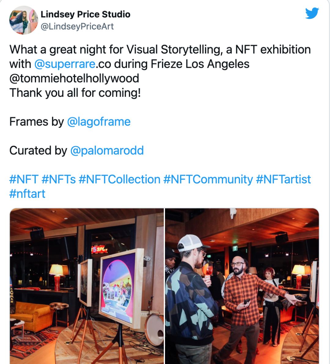他补充说,专门的NFT展示不仅可以弥合数字收藏品和物理环境之间的差距,而且还可以通过赋予NFT艺术品以现实世界的背景和位置来帮助解释和验证它。
