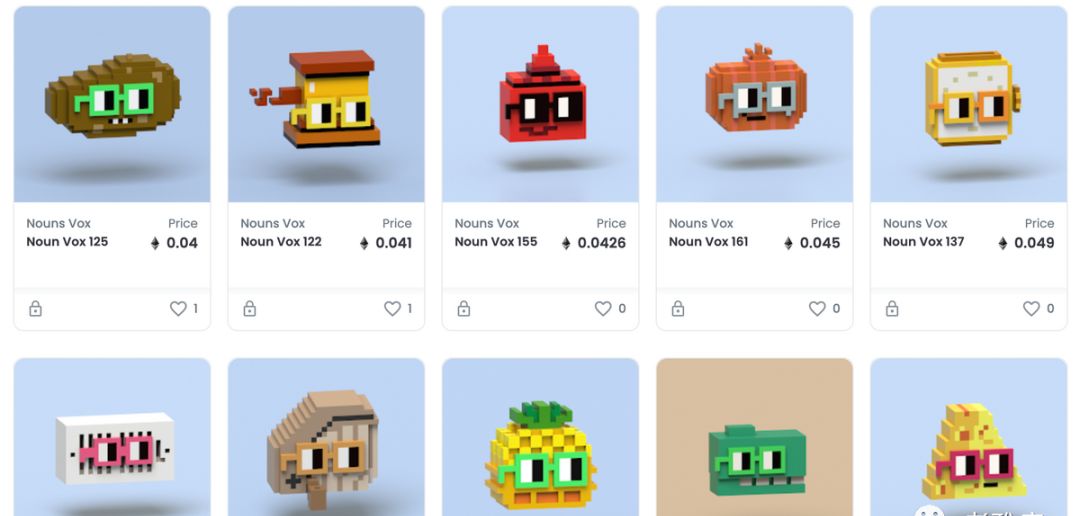 Nouns DAO是一个创新的NFT项目,由32*32的头像系列组成,通过算法每24小时生成一个。生成之后在官方网站上进行拍卖。,并结合拍卖、社区治理和一种新颖的渲染技术,每个 NFT 被称为一个 Noun ,且每天都会铸造一个 Noun,持续时间不限。
