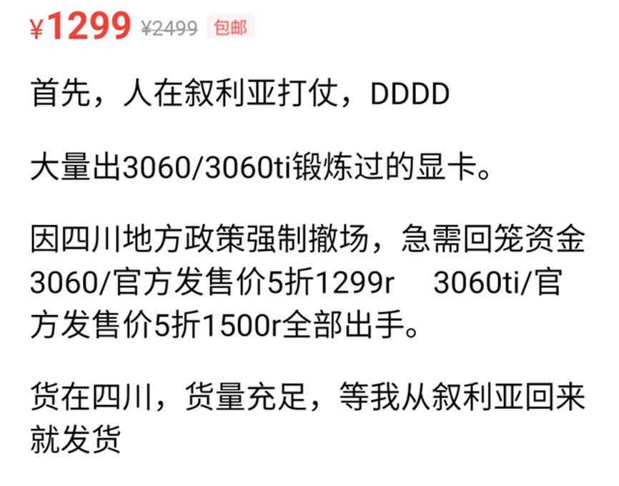在无数吧友和玩家的共同努力下,闲鱼上出现了大量的“叙利亚产”显卡。