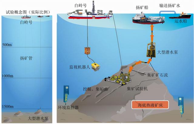 为了开采隐藏于深海的各项资源,各国都在开发相应的深海作业设施,而中国也打造了全球第1艘深海采矿船,那么中国的这艘深海挖矿船究竟有多强?能在水下2千米作业,日本愿出两倍价钱购买,但中国却已经明确表示不向外出售,这艘中国打造的全球深海挖矿船,每天的租金就高达130万,不仅能够为国获取大量海底资源,还能带来大量经济收入,海底矿产是海底沉积物和海底岩层中矿产的统称,迄今在前海区域发现和开采的矿产已达数10种。图为海底采矿流程