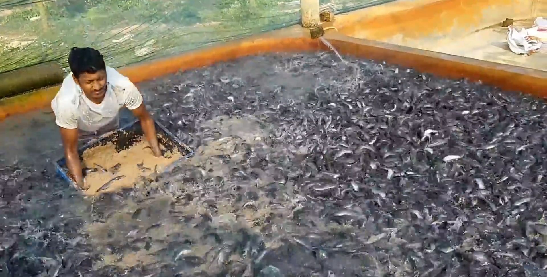 印度“开挂式”养鱼,一个鱼池养上万条,抢食场面那叫一个生猛