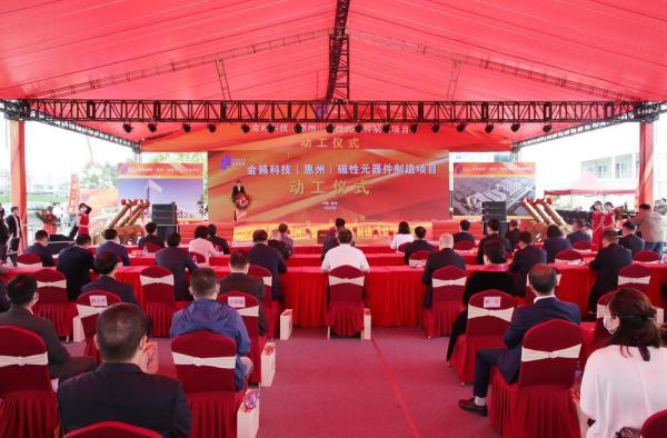 4月20日,金籁科技(惠州)磁性元器件制造项目[以下简称“金籁科技(惠州)”]动工仪式举行。据了解,该项目从签约到动工仅历时54天,总投资50亿元,建设周期约2年,预计3年内实现达产,未来3年内将实现年营业收入人民币50亿元以上,5年之内达到年营业收入100亿元以上。