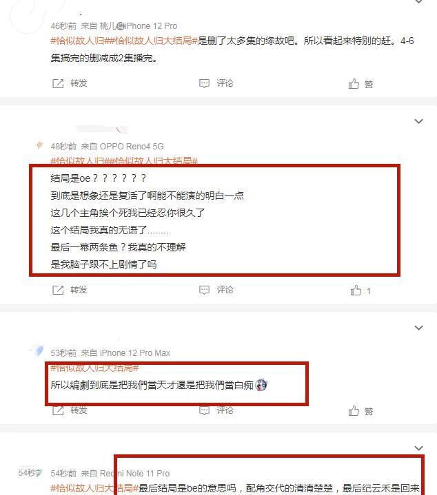 这个话题的讨论度非常之高,可见《恰似故人归》的热度之高,网友纷纷表示,最后结局是be的意思吗?配角交代的清清楚楚,最后纪云禾是回来了吗,怎么回来的?还是只是长意的想象,你倒是一点都没说。