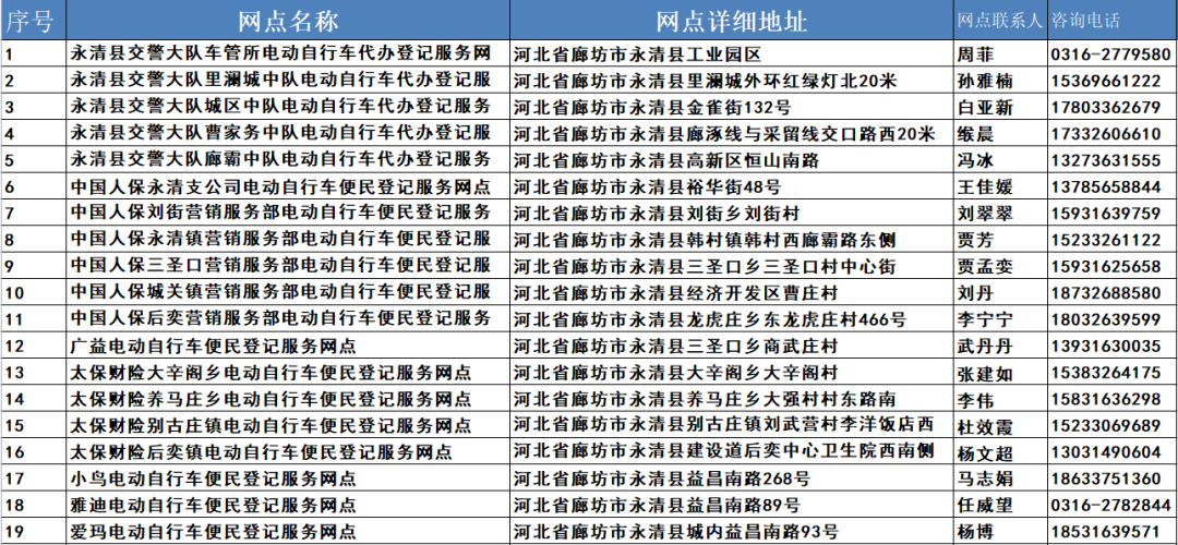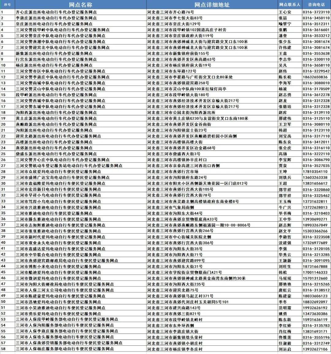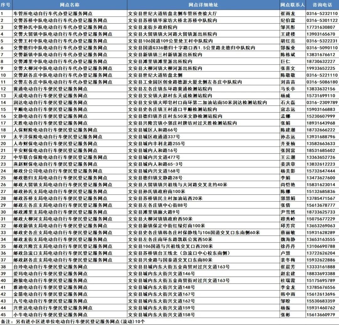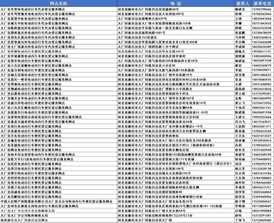 【热点】最新汇总:廊坊市电动自行车登记上牌服务网点