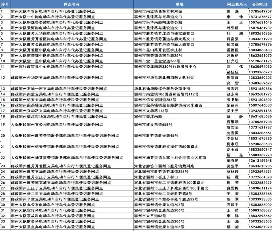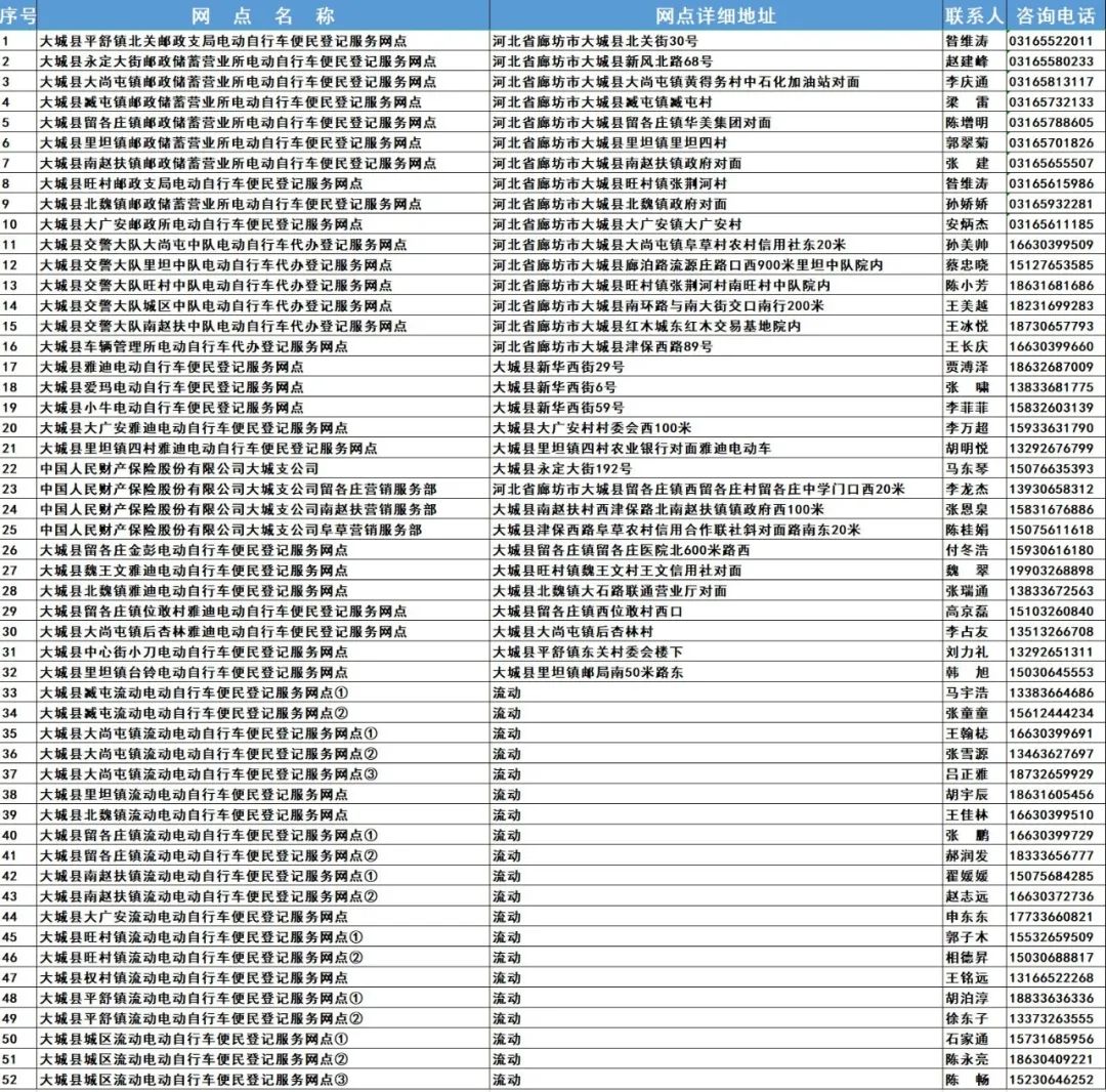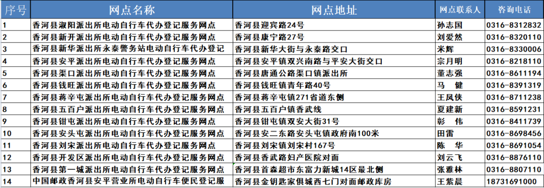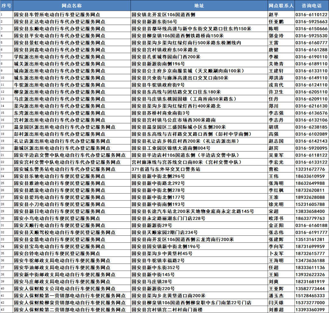 【热点】最新汇总:廊坊市电动自行车登记上牌服务网点