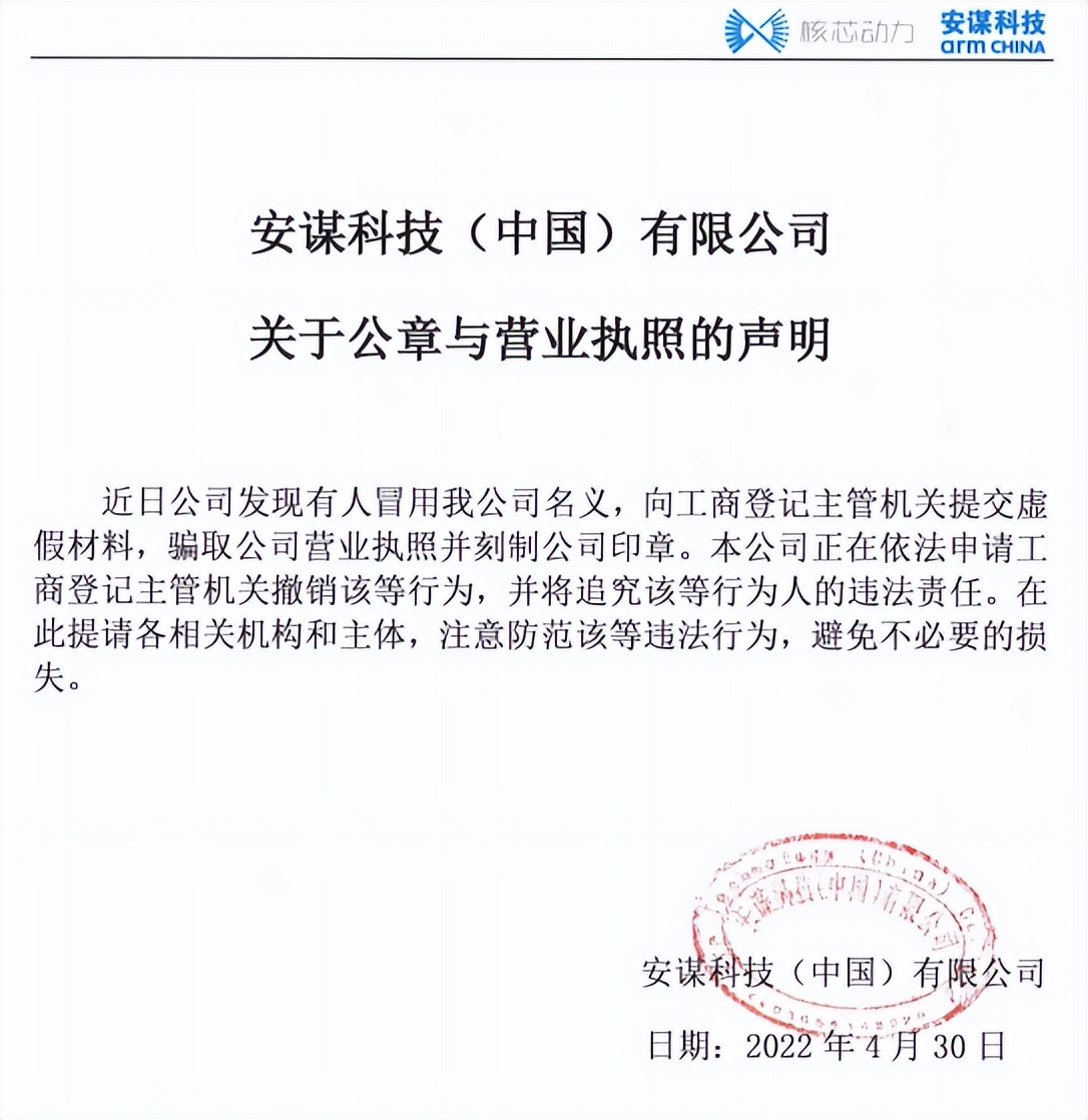 但很快事态进一步发展。4月30日一早,一封Arm的公关公司发送给媒体的邮件中称,已合法取得新的营业执照和公章。同时任命刘仁辰博士与陈恂博士担任公司的联席首席执行官。刘博士已经被深圳当地政府部门接受并合法注册为公司的法定代表人与总经理。该等任命现已生效。