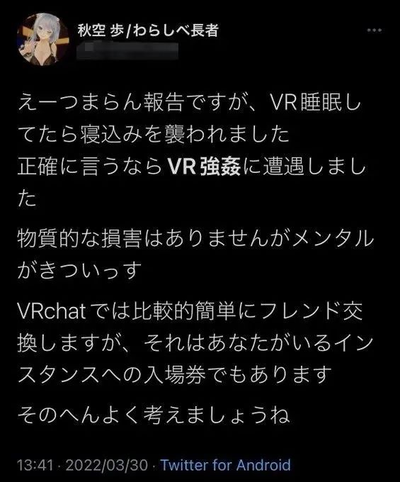 在日本网友控诉自己的“VR强奸”经历后,很多网友也都纷纷站出来,分享自己在游戏中所受到的各种各样的性暴力行为。