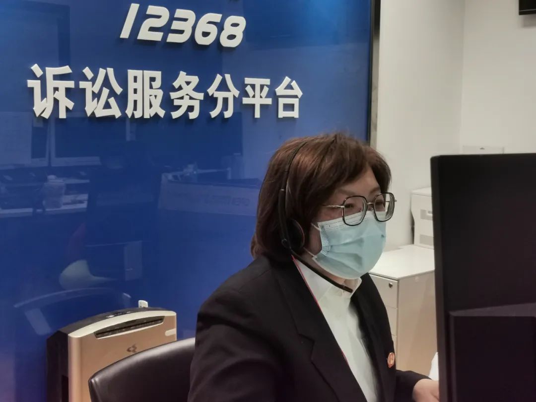 图为上海徐汇法院立案庭副庭长李红在接听12368诉讼服务热线。贾翌 摄