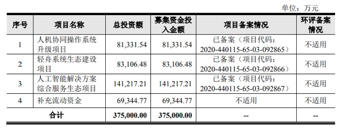 此次上市,云从科技拟募资37.5亿元,分别用于人机协同操作系统升级项目、轻舟系统生态建设项目、人工智能解决方案综合服务生态项目以及补充流动资金。