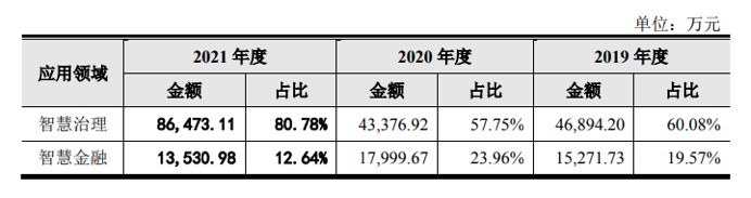 而从应用领域来看,公司主要面向智慧金融、智慧治理、智慧出行、智慧商业领域客户提供产品和服务。