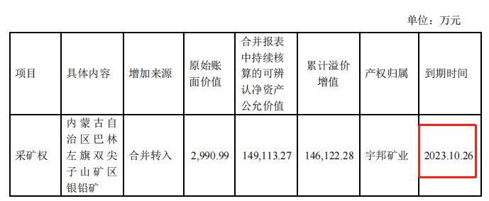 同时,假设该扩产项目在以后年度能够顺利获得立项批准,矿山改扩建顺利竣工并通过验收取得安全生产许可证,现有采矿许可证、安全生产许可证有效期届满后可顺利延续并取得新的许可证。 值得关注的是,根据回复函显示,目前,从宇邦矿业采矿权将于2023年10月26日到期。上述所提及的国土资源部取消了有关变更生产规模的审批事项,让宇邦矿业的生产规模扩张的假设多了一层变数。