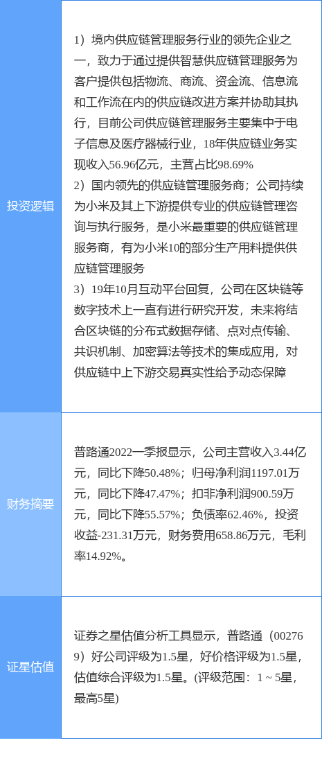 5月12日普路通涨停分析:供应链金融,区块链,小米概念股概念热股