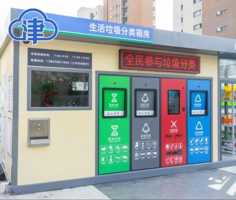 2022年4月,空港经济区万科新里程和岭尚家园出现了一所时尚又现代的“小房子”,这所“小房子”就是天津港保税区投放的首批智能垃圾分类箱房。
