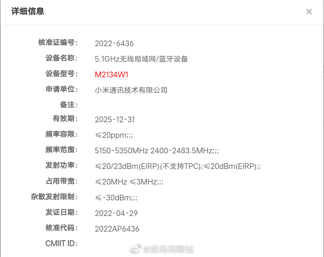近日消息,数码博主@数码闲聊站爆料小米新款智能手环、TWS蓝牙耳机和长续航手表都通过核准认证了,其中小米手环7很快就会到来。