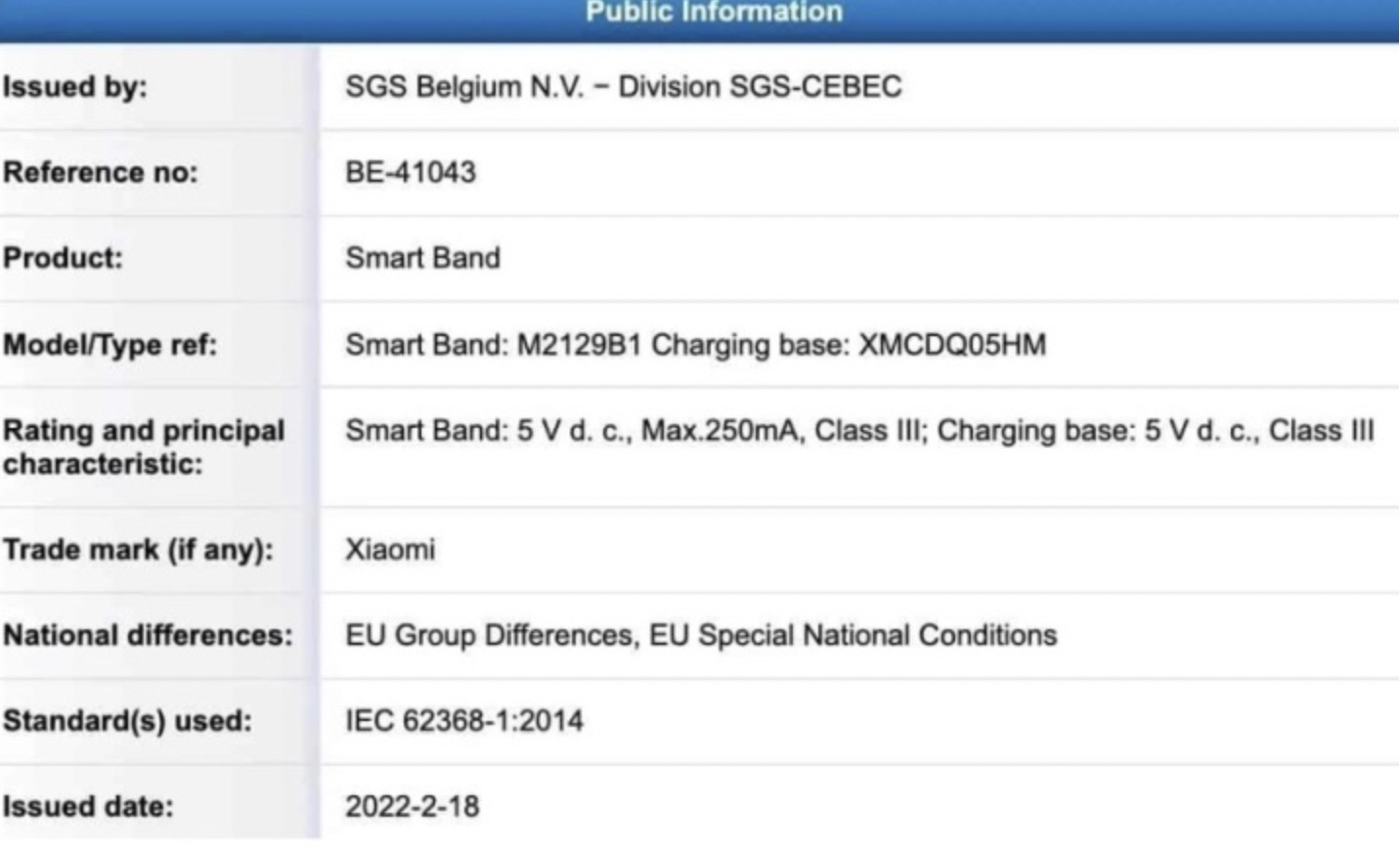 此前,小米手环7出现在比利时SGS-CEBEC和印尼电信网站上,显示其将搭载250mAh 的电池,充电底座在数据库中的型号为 XMCDQ05HM。
