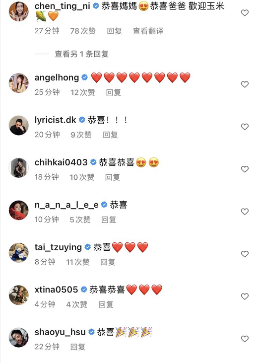 对于发文官宣产女喜讯的孟耿如,圈内众多好友都在第一时间为其送上了祝福,包括杨丞琳、杨铭微、陈庭妮、李千那、葛大为等。