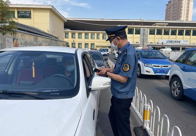5月20日,执法人员在太原火车站周边区域开展检查出租车非法营运、规范出租车驾驶员从业行为的行动。