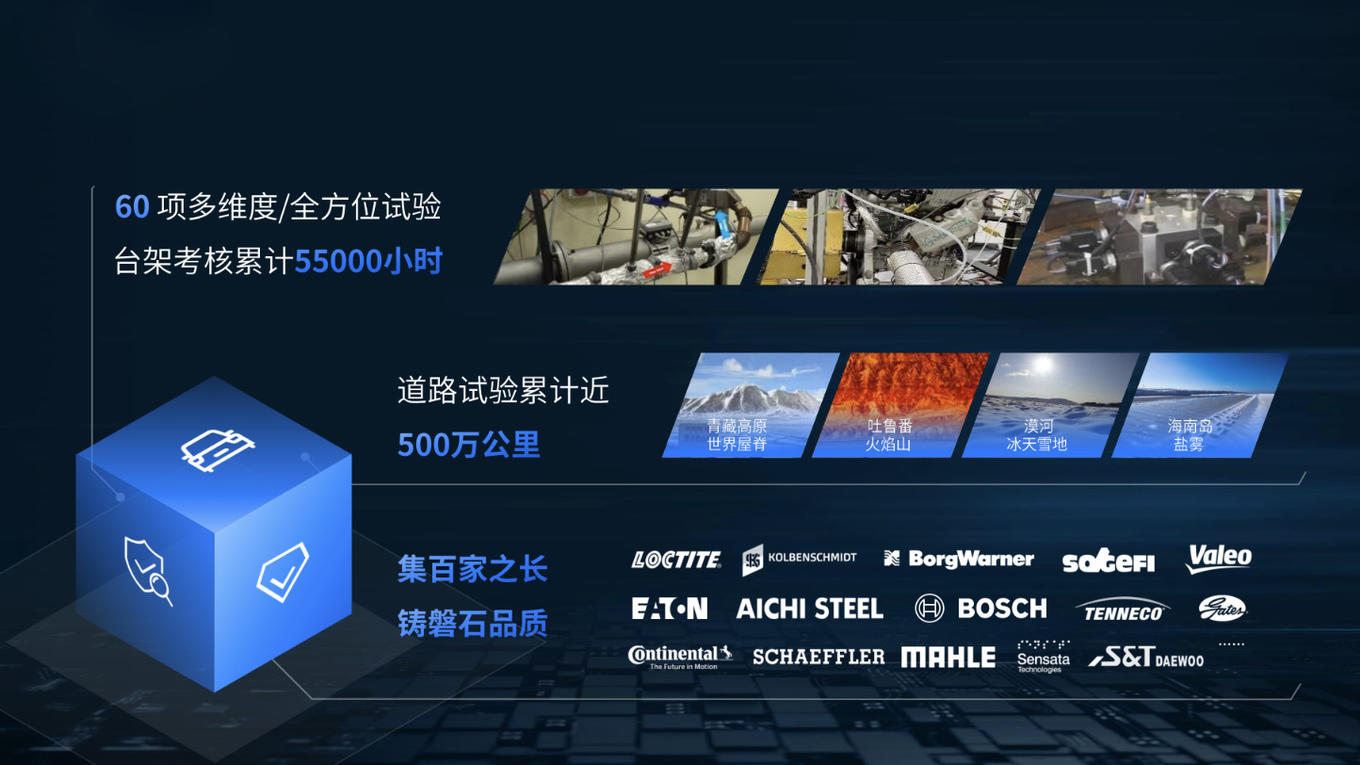 在制造环节,上汽蓝芯动力GS61 1.5T发动机需要经过60多项专项试验,台架测试累计超过55000小时。道路测试中,在不同工况下要完成近500万公里试验。另外,整机使用了来自博世、维湃、博格华纳、马勒、舍弗勒、天纳克、法雷奥、伊顿等知名供应商的零部件,保证产品品质。