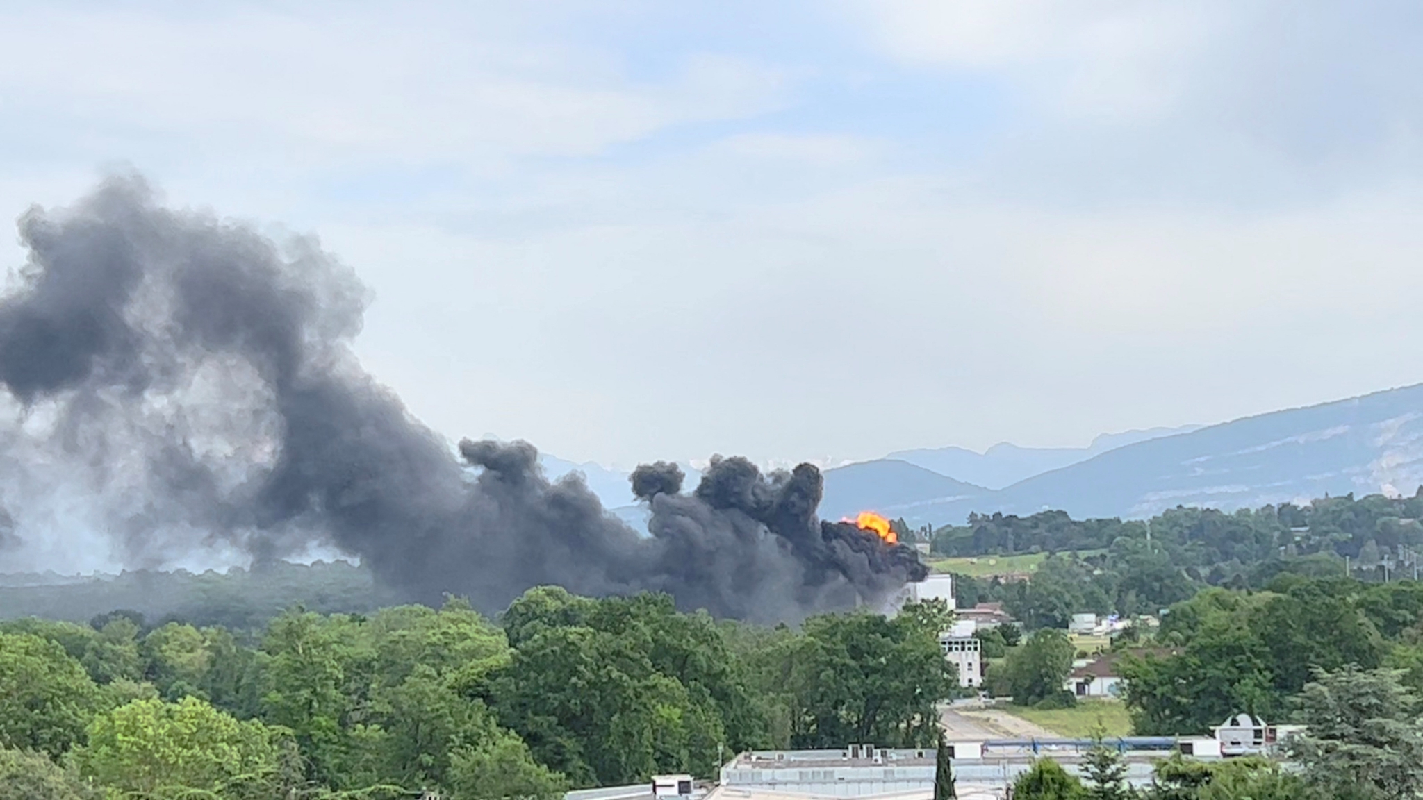 据外媒报道,瑞士日内瓦机场附近20日发生火灾,部分航班起降受到影响。这张社交媒体的视频截图显示,5月20日,瑞士日内瓦机场附近冒起浓烟。新华社/路透