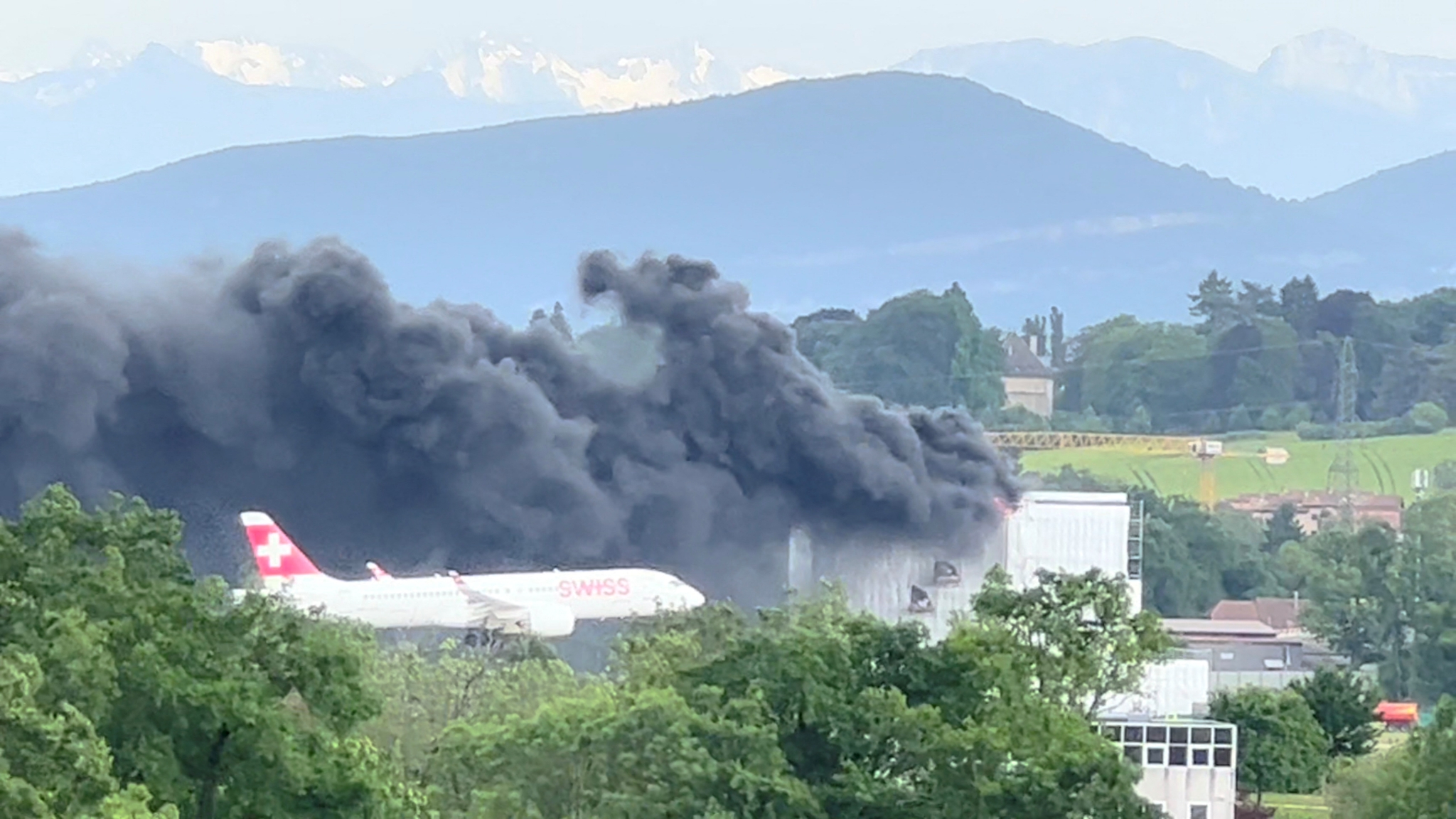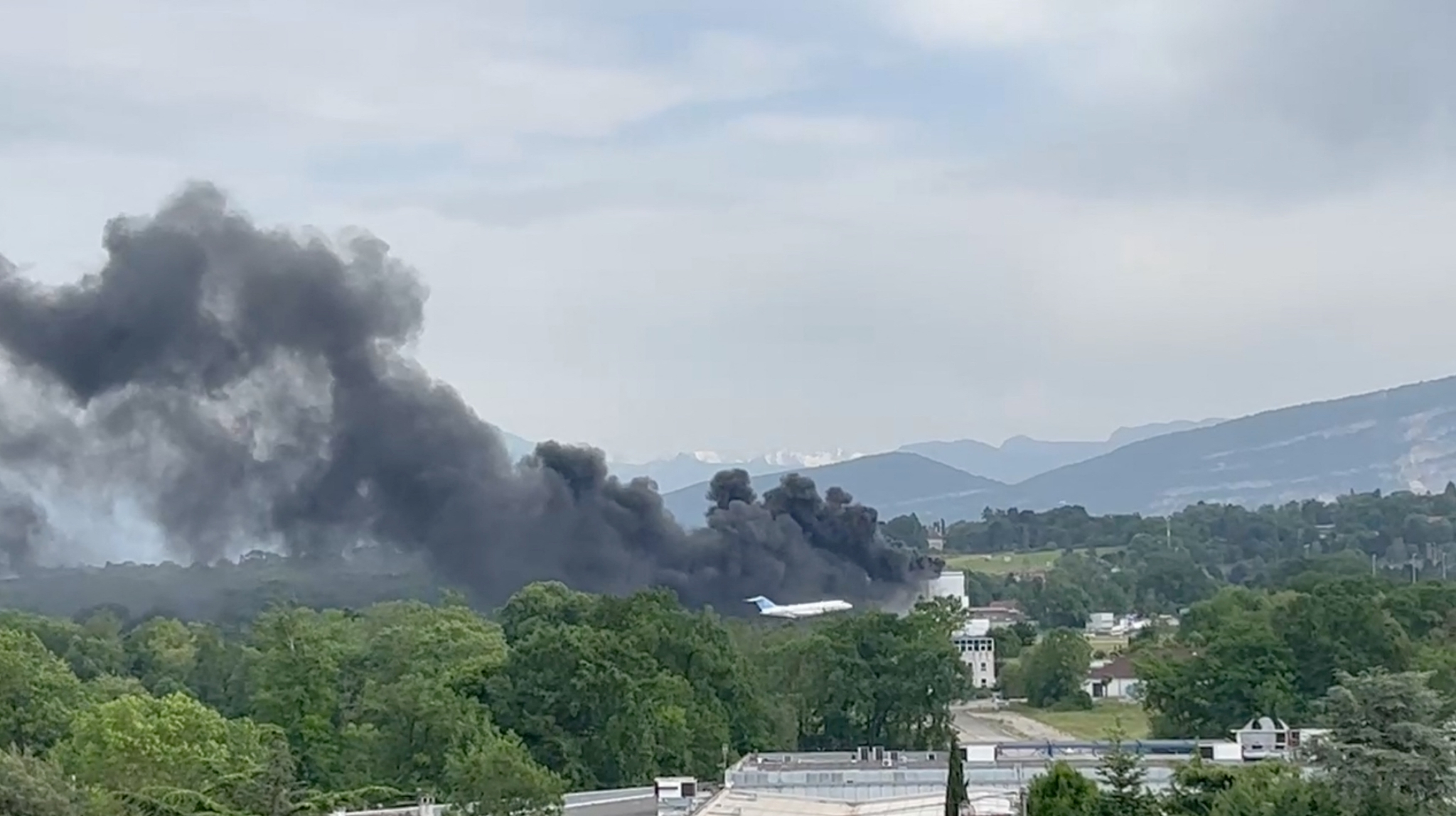 这张社交媒体的视频截图显示,5月20日,瑞士日内瓦机场附近冒起浓烟。新华社/路透