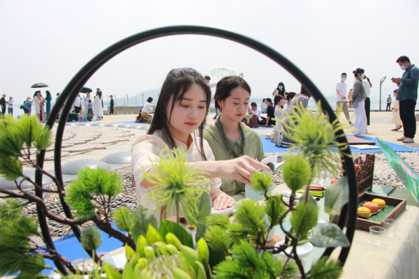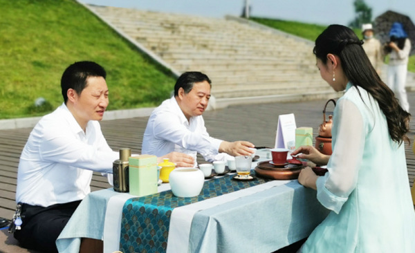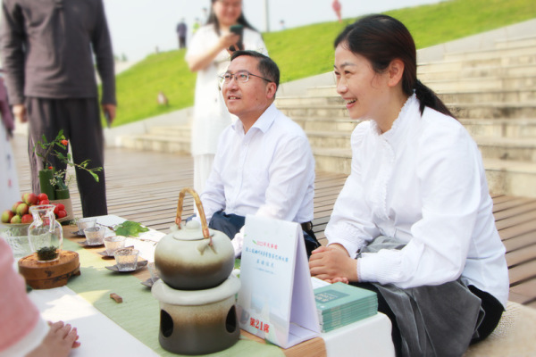 适逢周末,茶香弥漫的平天湖莲花台比往日更添一番热闹。净手、烫杯、请茶、洗茶、泡茶……参赛茶艺师们每一个步骤都展现了他们精湛的茶艺。清风拂来,茶香阵阵,也引来更多当地市民前往观赏品茶。“我平时比较喜欢茶艺,今天,我特意带着孩子来看表演品茶香,想让孩子们从小能接受中华传统文化的熏陶。“池州市民刘女士现场接受采访时表示。