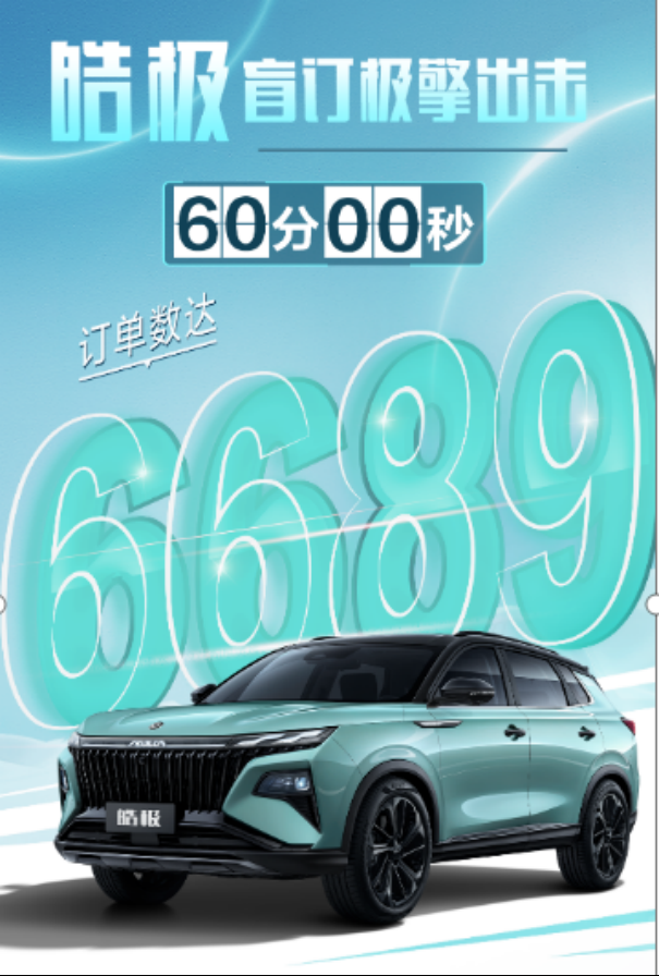 在昨晚的盲订开启后,全网用户在13分14秒内顺利达成3827单盲订,盲订开启一小时,皓极订单即突破7000台。高品质的粉丝服务,高质量的产品制造体系加持下,越来越新潮的湖北造,相信一定能获得更多消费者的信任和喜爱。