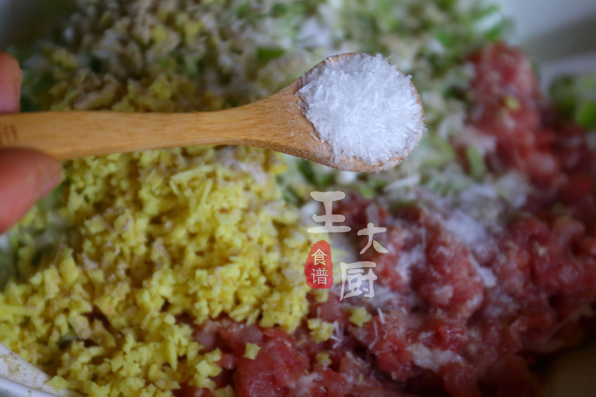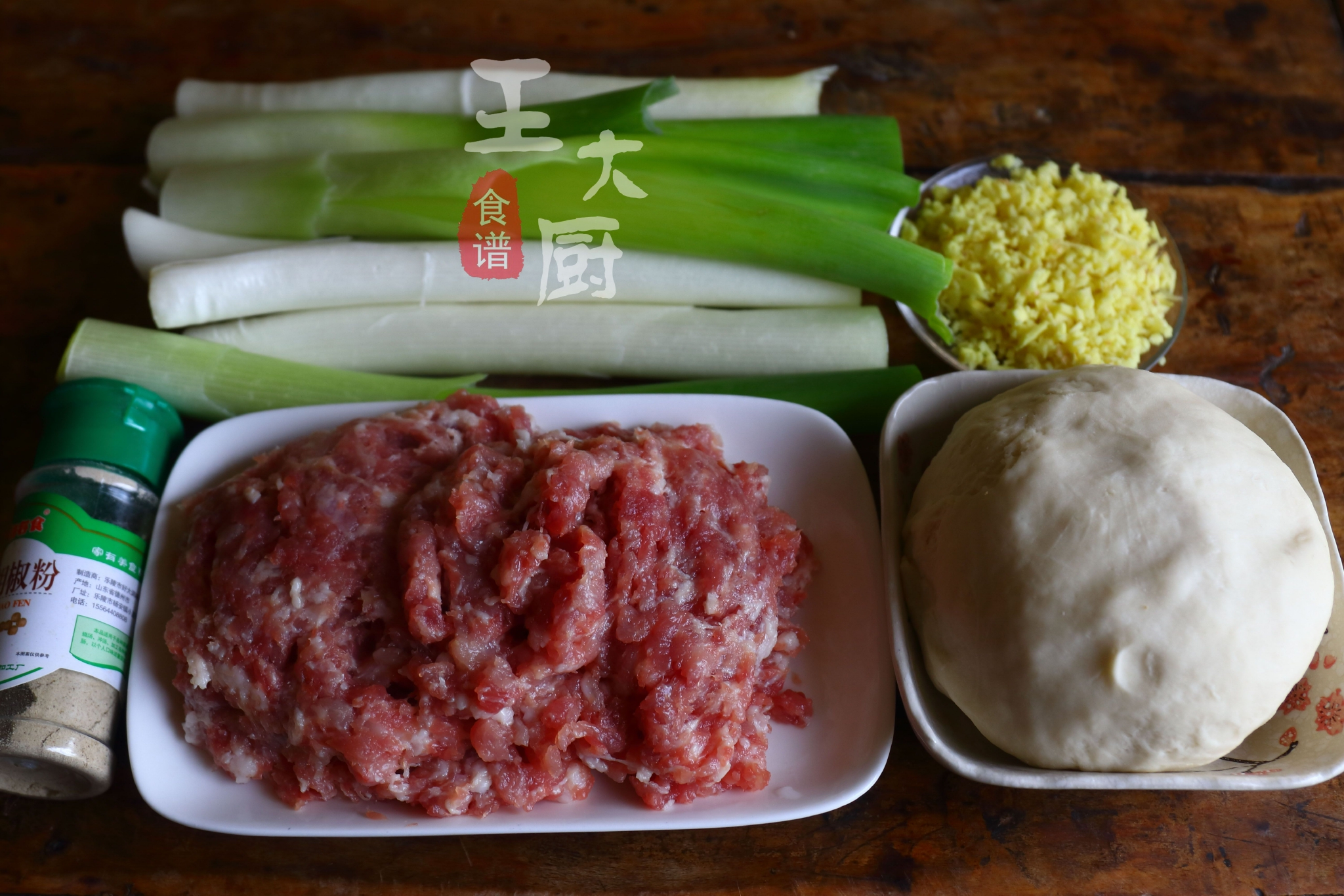 准备食材:肉馅、白胡椒粉、大葱、面团、姜末等。