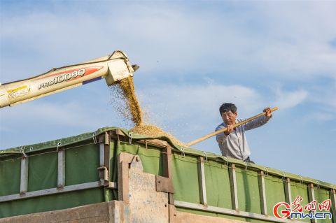 在安徽省芜湖市繁昌区孙村镇代亭村,农民正在收获小麦。(肖本祥 摄/光明图片)