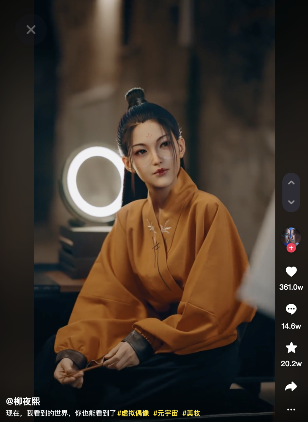 柳夜熙的爆火,离不开抓住时下元宇宙概念爆火的时机,另一边,也归因于柳夜熙综合了元宇宙、虚拟偶像、美妆和影视于一体的帐号输出。