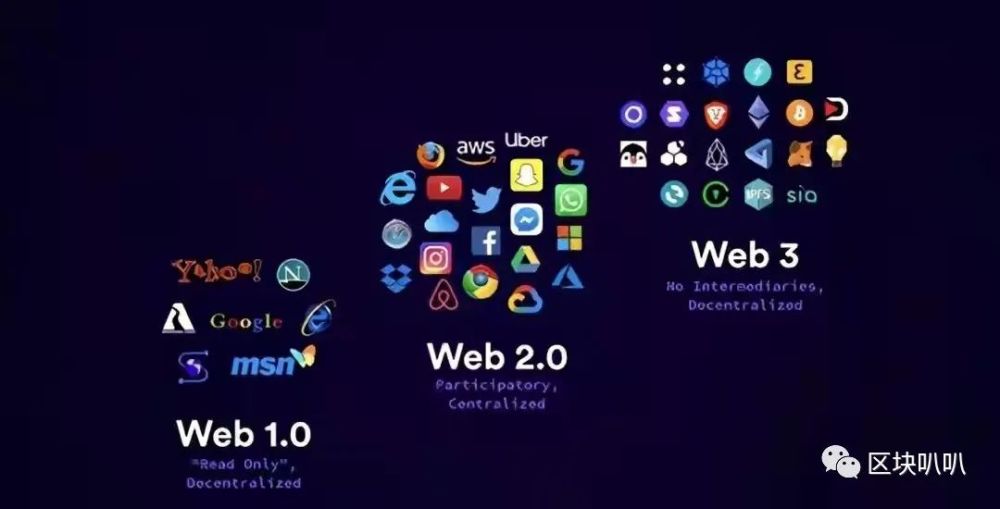 互联网Web1.0 主要以信息网页为主,Web2.0主要以互动信息如QQ VX社交 评论为主公司中心化控制用户的数据流量分发为自己增值。