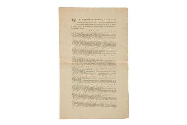 在去年 11 月的时候,苏富比拍卖行就准备拍卖《 美国宪法 》的初版印刷本,估价大概在 2000 万美元左右。