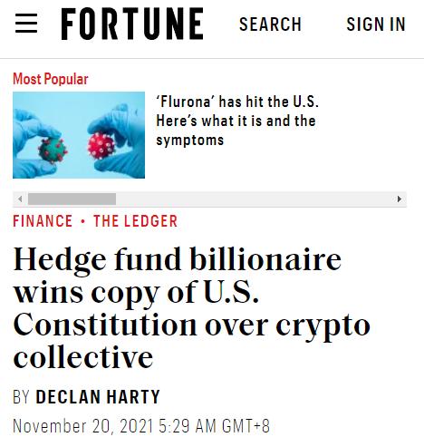 但有一波人却玩出了新花样,他们在区块链上搞起了众筹,组成了一个名叫“ ConstitutionDAO ”的组织,希望集众人之力来参与这场拍卖。