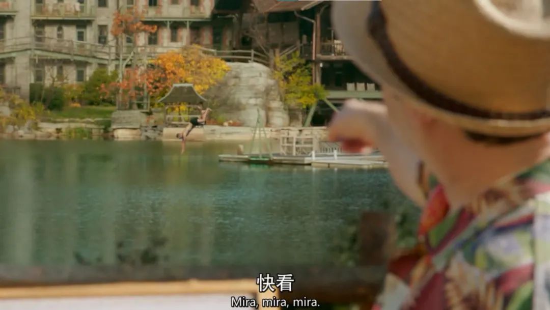 其次,Lake View自身的技术也并不完美,在美丽的风景中不时就会出现一些Bug。例如烦人又运行不正常的口香糖广告、飞到一半就卡住的大雁、跳水跳出重影的人像......甚至Brown在仔细观察后发现,看似美丽的湖面其实是一个巨大的GIf.动图在不断重复播放湖水画面。