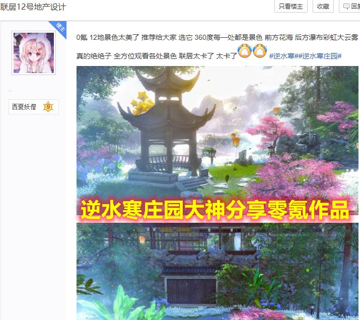 对于任何一位大型MMORPG游戏玩家而言,如何用一分钱都不花的方法,获得游戏中大部分人都很难达成的成就,绝对是一件让人满足感爆棚的事情。今天我们要介绍的这位小姐姐,就是在网易武侠端游《逆水寒》里,一分钱都没花,硬生生地做出来了一个拥有12处美景的空中大别墅。