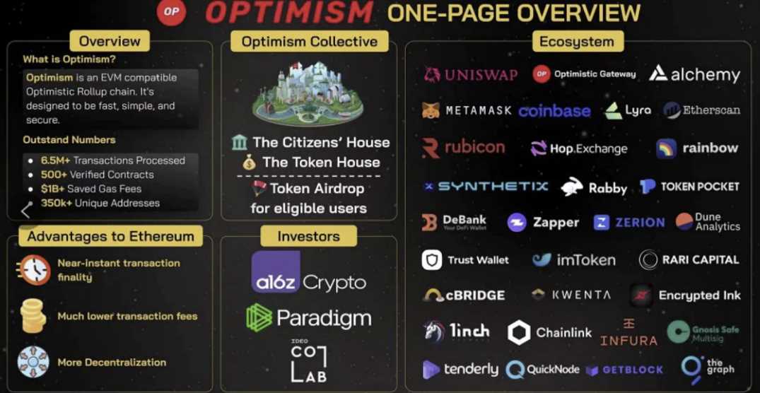 Optimism 是一种低成本且闪电般快速的以太坊 L2 区块链。已发币,但是根据官方介绍,这里空投未发完成,未来更多空投会分发给生态项目等。