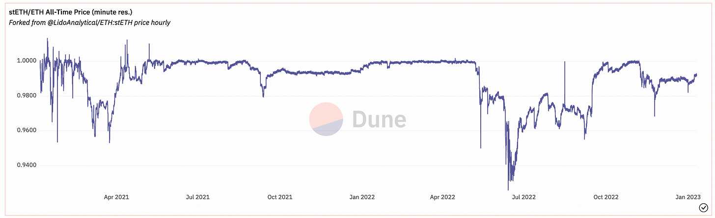 如上图所述,总体来说,回报率层面每家差别不大,纯Staking 约 4%-5% ,做AMM 约7%,Frax 现在有一定初期收益;流动性层面差别极大,针对 0.2% 的滑点(大半个月纯 Staking 盈利),stETH 能卖 40000个, 而 bETH 仅能卖10个;区块链技术和清晰度层面,DeFi 明显优于 CeFi。除此之外除了挖矿盈利外,折价也是决定回报率的一个重要来源,要特别注意观查。