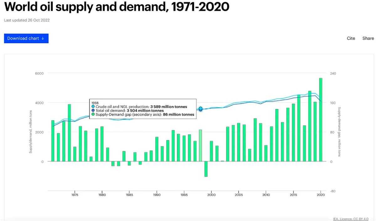 在 1999 年与 2000 年,一旦供应降低被社会发现,石油涨价了 200%之上。