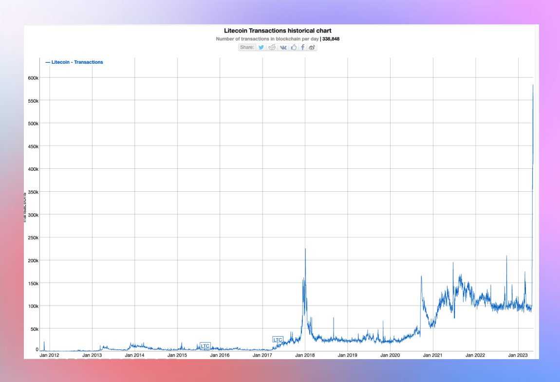 此外,自 5 月 3 日发布 LTC-20(BRC-20 代币规范在BTC上的一个分支)至今,莱特币的链上主题活动一直在悄悄的提高。以往一周的成交量比以往任何时候都需多。