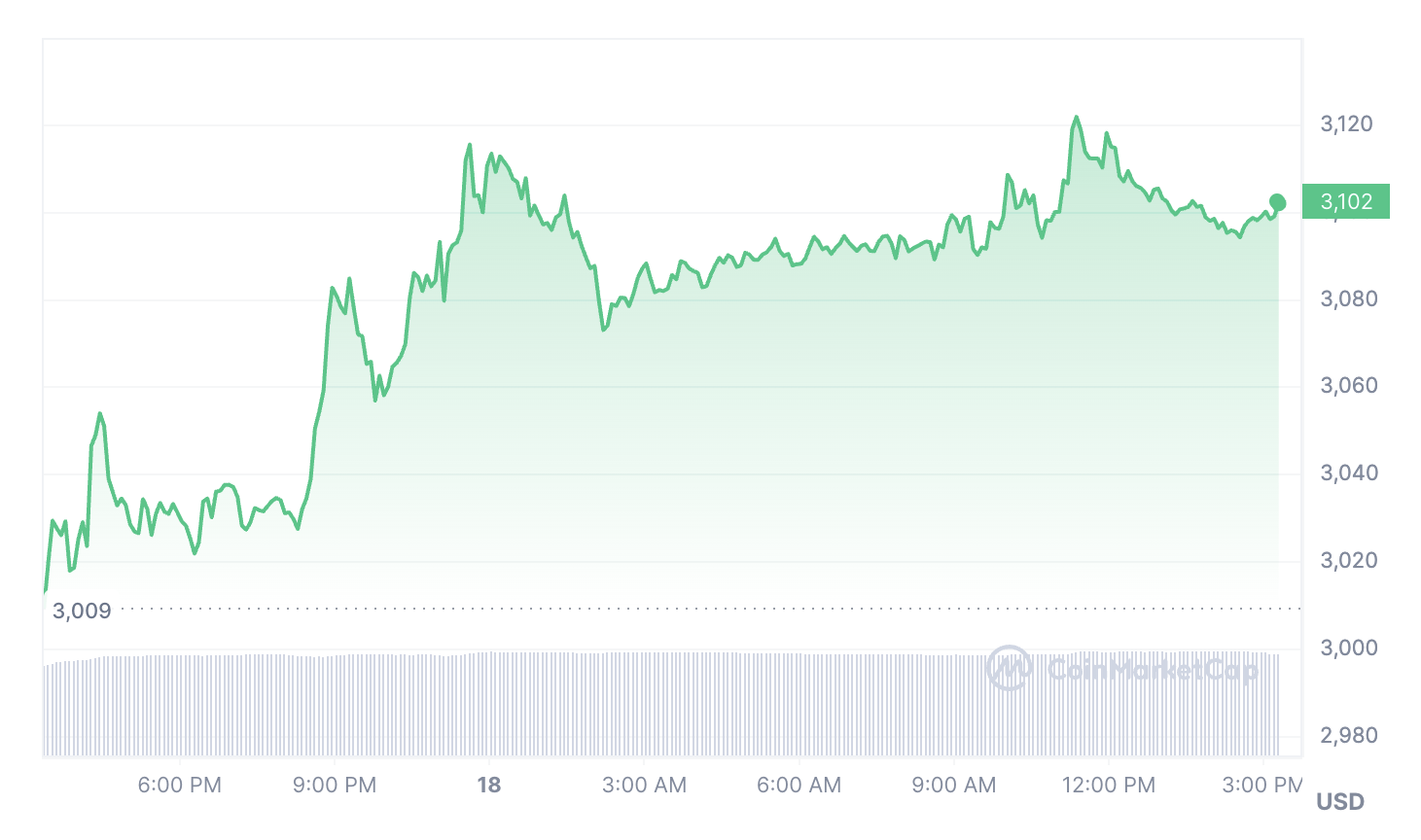 "如果 90% 的人认为 ETH ETF 将被否决,而这些人中的大多数又认为这将导致加密货币崩盘,那么谁会真正卖出呢?"他补充道,然后宣布否决的预期已经 "定价"。根据CoinMarketCap数据,截至发稿时,以太币(ETH)的交易价格为3102美元。